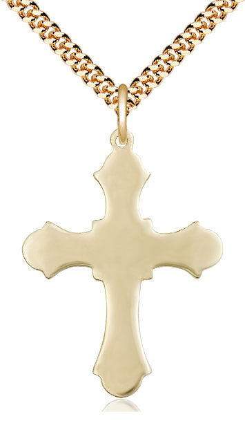 Embrace your faith with timeless elegance. This exquisite Gold Filled Cross Necklace, measuring 1 1/4 x 7/8, is meticulously handcrafted in the USA by Bliss, a renowned name in religious jewelry. The durable 24-inch Gold Filled curb chain gracefully drapes with a secure lobster clasp for a comfortable, everyday wear.