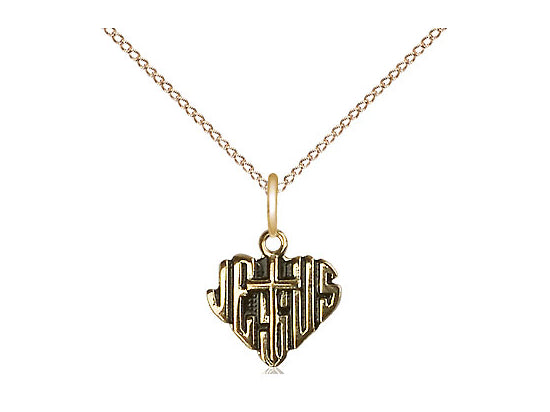 Small 14kt Gold Filled Heart of Jesus / Cross Pendant Necklace 3/8 x 3/8 - 18 Inch Chain