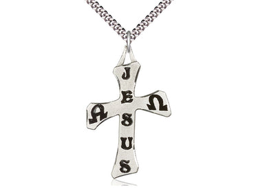 Embrace your faith with timeless elegance. This exquisite Sterling Silver Cross Necklace, measuring 1 3/4 x 1 1/8, is meticulously handcrafted in the USA by Bliss, a renowned name in religious jewelry. The durable 24-inch Sterling Silver curb chain gracefully drapes with a secure lobster clasp for a comfortable, everyday wear.