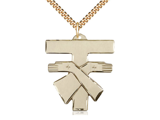 Large 14kt Gold Filled Franciscan Cross Pendant Necklace 1 3/8 x 1 1/4 - 24 Inch Chain
