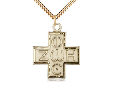 Large 14kt Gold Filled Light & Life Cross Pendant Necklace 1 3/8 x 1 1/4 - 24 Inch Chain