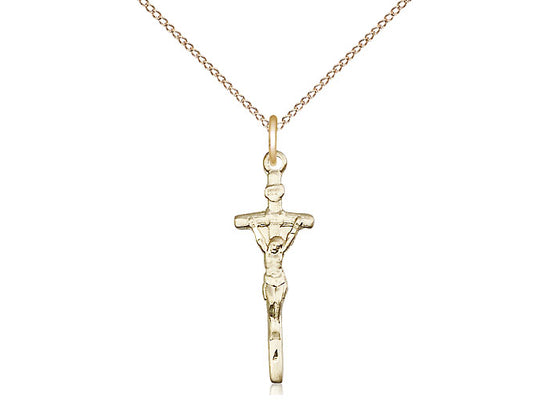 14kt Gold Filled Papal Crucifix Pendant Necklace 7/8 x 1/4 - 18 Inch Chain
