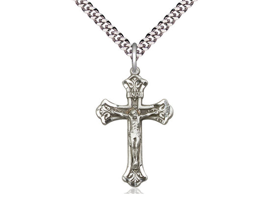 Sterling Silver Crucifix Pendant Necklace 1 1/8 x 5/8 - 24 Inch Chain