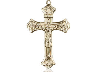 Exquisite 14KT Gold Crucifix Pendant (1 7/8 x 1 1/8) on Chain with Lobster Clasp - Handmade in the USA by Bliss