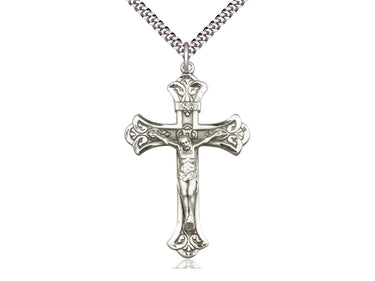 Exquisite Sterling Silver Crucifix Necklace (1 7/8 x 1 1/8) on 24 Chain with Lobster Clasp - Handmade in the USA by Bliss