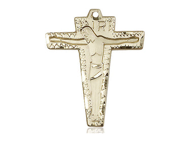 14kt Solid Gold Primative Crucifix Medal 1 1/8 x 7/8
