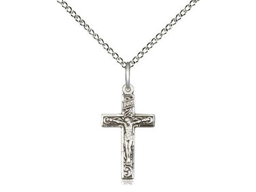 Sterling Silver Crucifix Pendant Necklace 3/4 X 3/8 - 18 Inch Chain