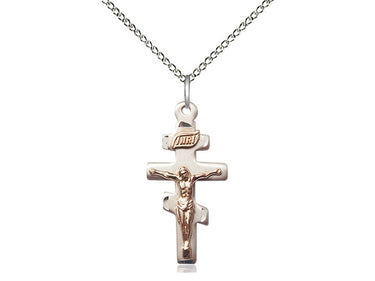 Exquisite Two-Tone Greek Crucifix Necklace (5/8 X 1 1/8) on 18 Chain with Lobster Clasp - Handmade in the USA by Bliss