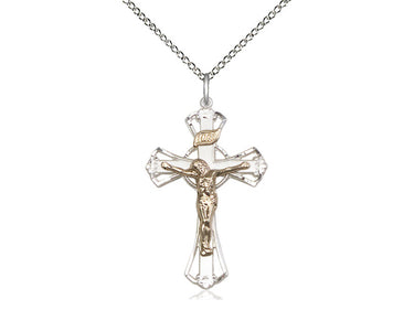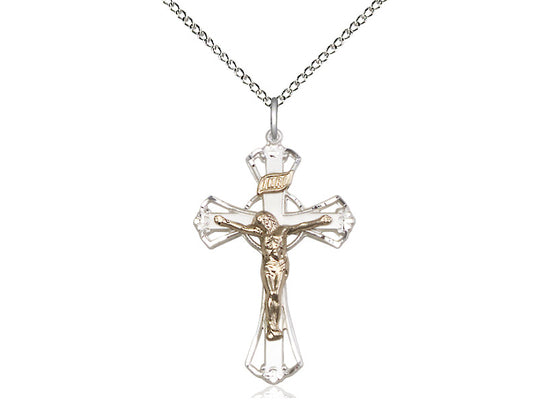 Large Two-Tone GF/SS Crucifix Pendant Necklace 1 1/4 x 3/4 - 18 Inch Chain