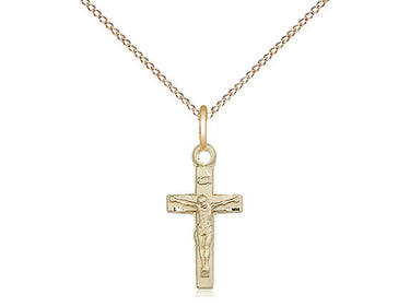 Small 14kt Gold Filled Crucifix Pendant Necklace 5/8 x 1/4 - 18 Inch Chain
