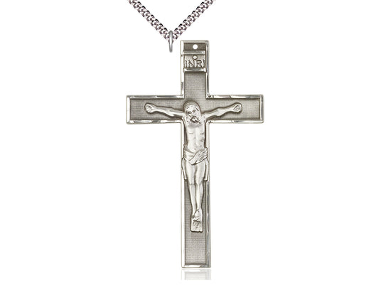 Extra Large Sterling Silver Crucifix Pendant Necklace 3 X 1 3/4 - 24 Inch Chain
