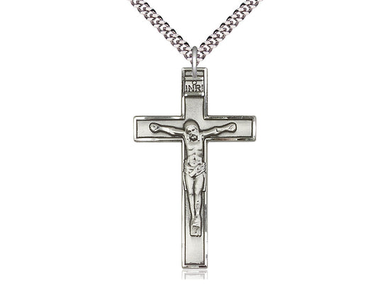 Large Sterling Silver Crucifix Pendant Necklace 1 3/4 X 1 - 24 Inch Chain