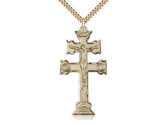 Extra Large 14kt Gold Filled Caravaca Crucifix Pendant Necklace 2 x 1 - 24 Inch Chain