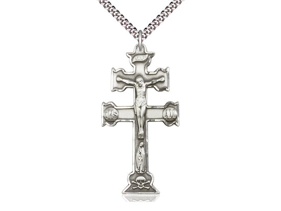 Extra Large Sterling Silver Caravaca Crucifix Pendant Necklace 2 x 1 - 24 Inch Chain