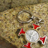 Silver Tone Red Enamel St Benedict Keychain | Italian Catholic Key Chain