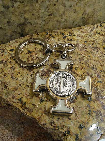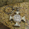 Silver Tone St Benedict Catholic Keychain with Glow-in-the-Dark Enamel