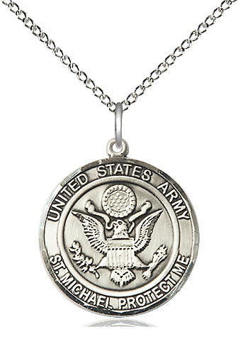 Sterling Silver ARMY/ST. MICHAEL Pendant Necklace 3/4 x 3/4 - 18 Inch Chain
