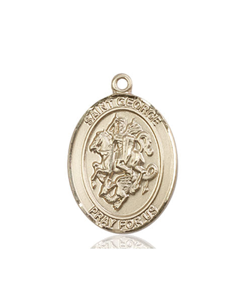 Embrace your faith with timeless elegance. This exquisite 14KT Gold Saint George/Paratrooper Pendant, measuring 3/4 x 1/2, is meticulously handcrafted in the USA by Bliss, a renowned name in religious jewelry. The durable -inch 14KT Gold curb chain gracefully drapes with a secure lobster clasp for a comfortable, everyday wear.