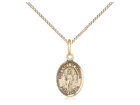 Small 14kt Gold Filled Our Lady of Knock Pendant Necklace 1/2 x 1/4 - 18 Inch Chain