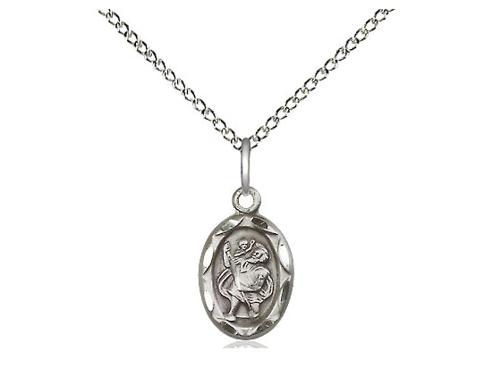 Small Sterling Silver St. Christopher Pendant Necklace 1/2 x 1/4 - 18 Inch Chain