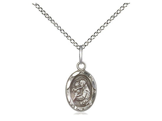 Small Sterling Silver St. Anthony Pendant Necklace 1/2 x 1/4 - 18 Inch Chain
