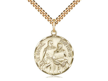 14kt Gold Filled St. Raphael the Archangel Pendant Necklace 7/8 x 3/4 - 24 Inch Chain