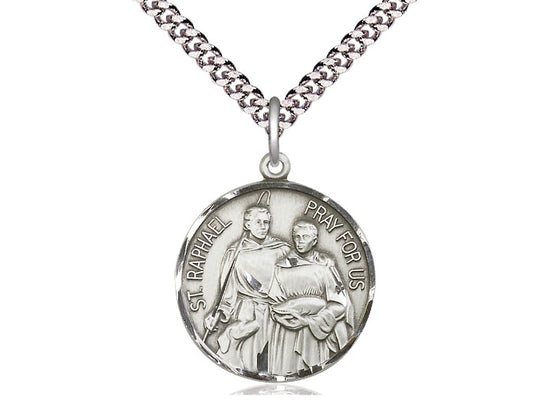 Sterling Silver St. Raphael the Archangel Pendant Necklace 7/8 x 3/4 - 24 Inch Chain