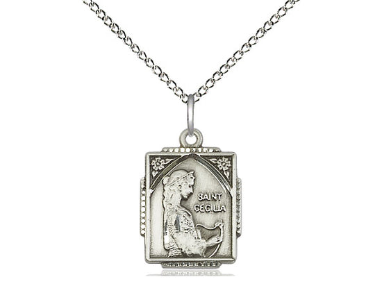 Small Sterling Silver St. Cecilia Pendant Necklace 5/8 X 1/2 - 18 Inch Chain