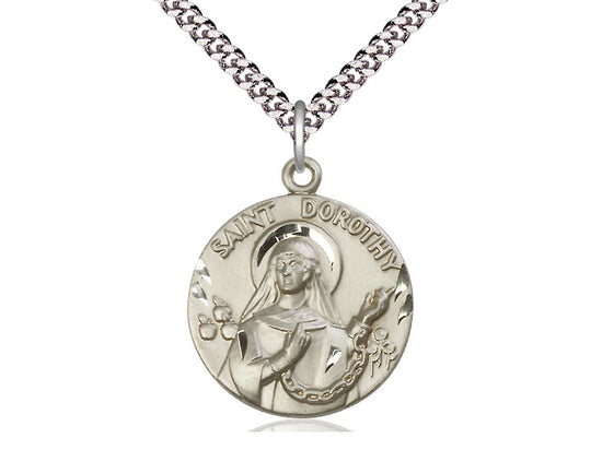 Sterling Silver St. Dorothy Pendant Necklace 1 x 7/8 - 24 Inch Chain