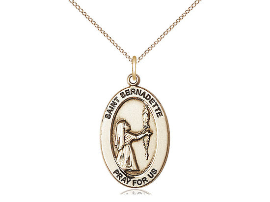 14kt Gold Filled St. Bernadette Pendant Necklace 1 x 1/2 - 18 Inch Chain