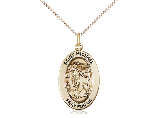 14kt Gold Filled St. Michael the Archangel Pendant Necklace 1 x 1/2 - 18 Inch Chain