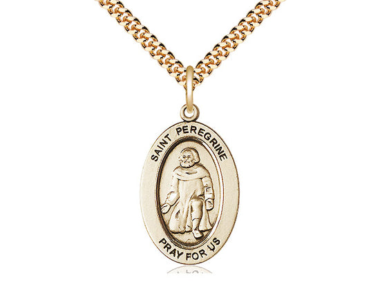 14kt Gold Filled St. Peregrine Laziosi Pendant Necklace 1 x 1/2 - 24 Inch Chain