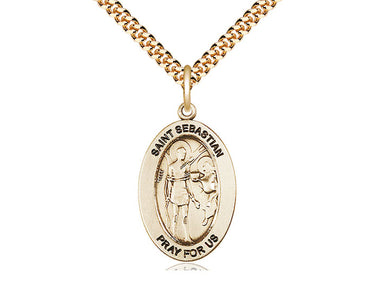 14kt Gold Filled St. Sebastian Pendant Necklace 1 x 1/2 - 24 Inch Chain
