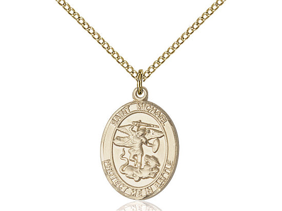 14kt Gold Filled St. Michael Pendant Necklace 3/4 X 1/2 - 18 Inch Chain