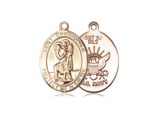 Exquisite 14KT Gold Saint Christopher/Navy Pendant (3/4 x 1) on Chain with Lobster Clasp - Handmade in the USA by Bliss