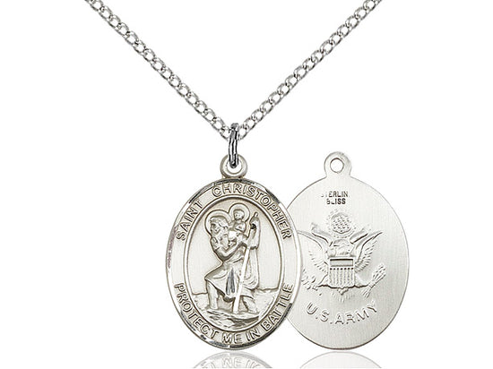 Exquisite Sterling Silver Saint Christopher/Army Necklace (3/4 x 1) on 18 Chain with Lobster Clasp - Handmade in the USA by Bliss