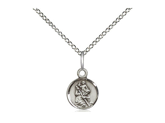 Small Sterling Silver St. Christopher Pendant Necklace 3/8 x 1/4 - 18 Inch Chain
