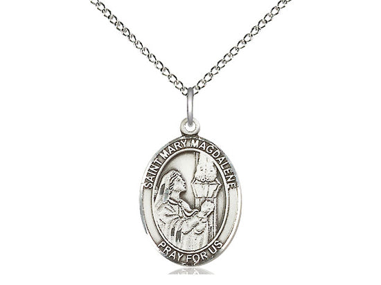 Sterling Silver St. Mary Magdalene Pendant Necklace 3/4 x 1/2 - 18 Inch Chain