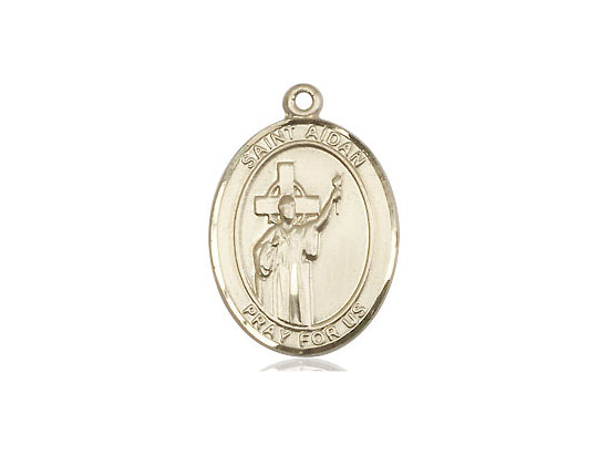 14kt Solid Gold St. Aidan Of Lindesfarne Medal 3/4 x 1/2
