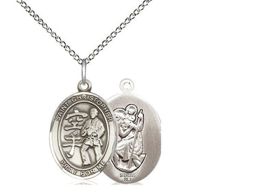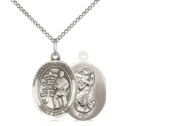 Sterling Silver St Christopher / Karate Pendant Necklace 3/4 x 1/2 - 18 Inch Chain