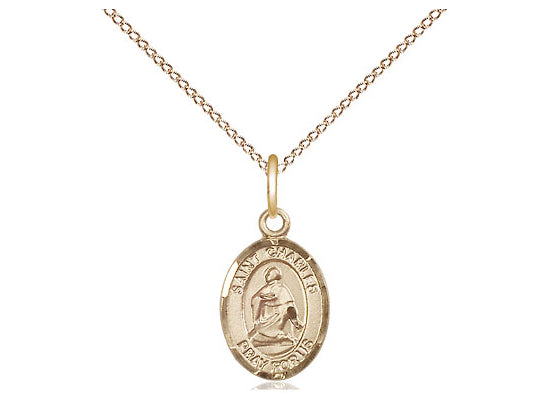 Small 14kt Gold Filled St. Charles Borromeo Pendant Necklace 1/2 x 1/4 - 18 Inch Chain
