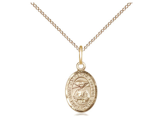 Small 14kt Gold Filled St. Catherine Laboure Pendant Necklace 1/2 x 1/4 - 18 Inch Chain