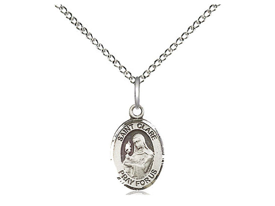 Small Sterling Silver St. Clare of Assisi Pendant Necklace 1/2 x 1/4 - 18 Inch Chain