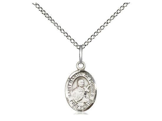 Small Sterling Silver St. Martin de Porres Pendant Necklace 1/2 x 1/4 - 18 Inch Chain
