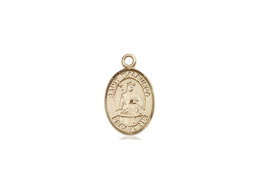 Embrace your faith with timeless elegance. This exquisite 14KT Gold Saint Walburga Pendant, measuring 1/2 x 1/4, is meticulously handcrafted in the USA by Bliss, a renowned name in religious jewelry. The durable -inch 14KT Gold curb chain gracefully drapes with a secure lobster clasp for a comfortable, everyday wear. The Saint Walburga is a patron saint of coughs, storms.