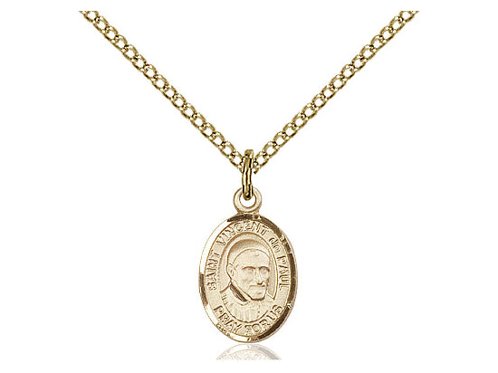 Small 14kt Gold Filled St. Vincent de Paul Pendant Necklace 1/2 x 1/4 - 18 Inch Chain