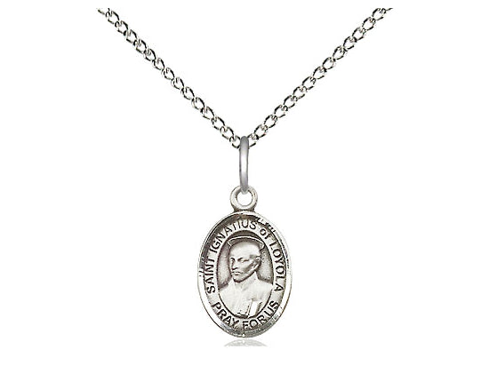 Small Sterling Silver St. Ignatius of Loyola Pendant Necklace 1/2 x 1/4 - 18 Inch Chain