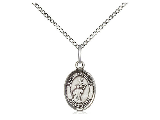 Small Sterling Silver St. Tarcisius Pendant Necklace 1/2 x 1/4 - 18 Inch Chain