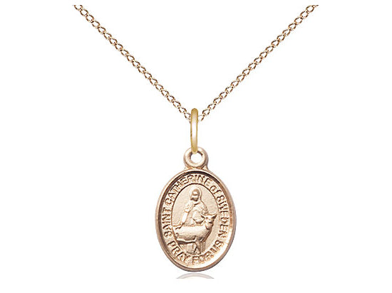 Small 14kt Gold Filled St. Catherine Of Sweden Pendant Necklace 1/2 x 1/4 - 18 Inch Chain