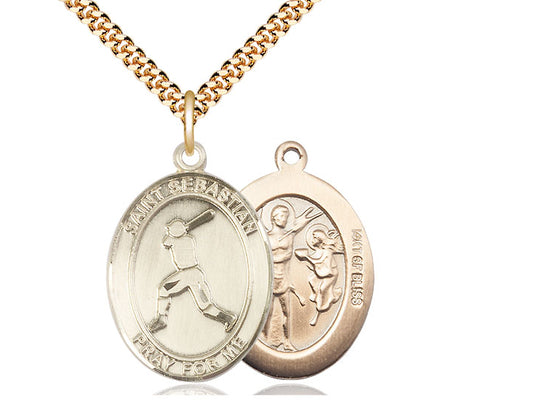 14kt Gold Filled St. Sebastian/Baseball Pendant Necklace 1 x 3/4 - 24 Inch Chain